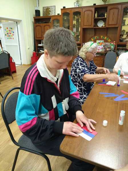 22.08.2017 для группы дневного пребывания отделения дневного пребывания граждан пожилого возраста и инвалидов муниципальном учреждении «Комплексный центр социального обслуживания населения Фрунзенского района г. Ярославля», расположенного по адресу: г. Ярославль, пр-д Матросова, д.10 «Б» в честь Дня Государственного флага Российской Федерации прошла интерактивная программа «Овеянный славою флаг наш Российский». Получатели социальных услуг услышали историю возникновения праздника, а также поучаствовали в мастер-классе «Российский флаг».